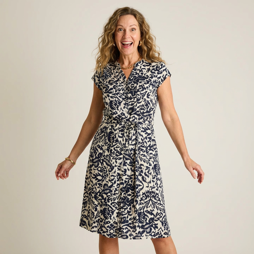 Vestido Midi Menta con Nudo Frontal y Estampado Geométrico