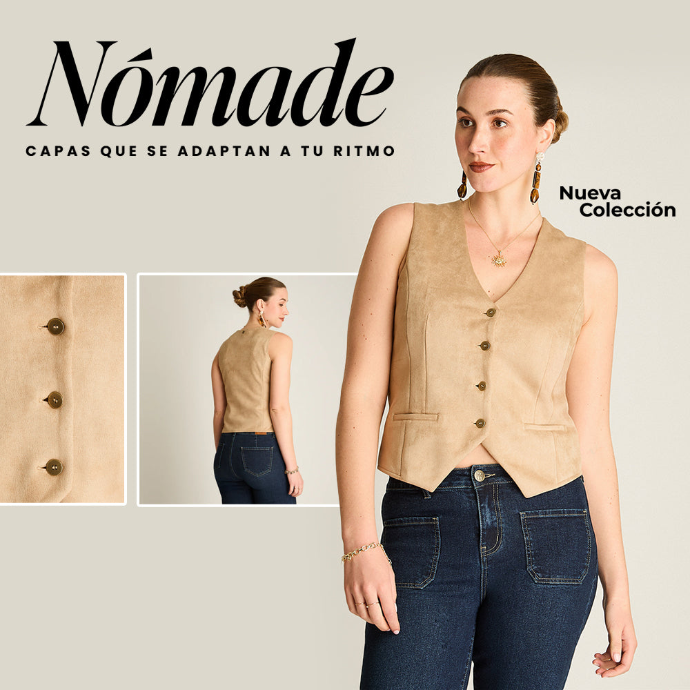 Gilette Camel Sin Mangas con Bolsillos Falsos