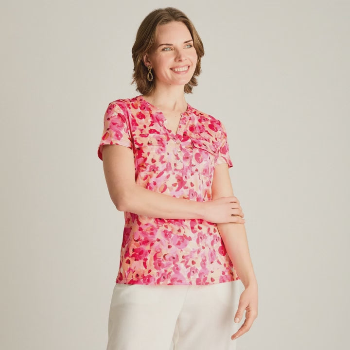 Polera Fucsia Estampado Floral Manga Corta