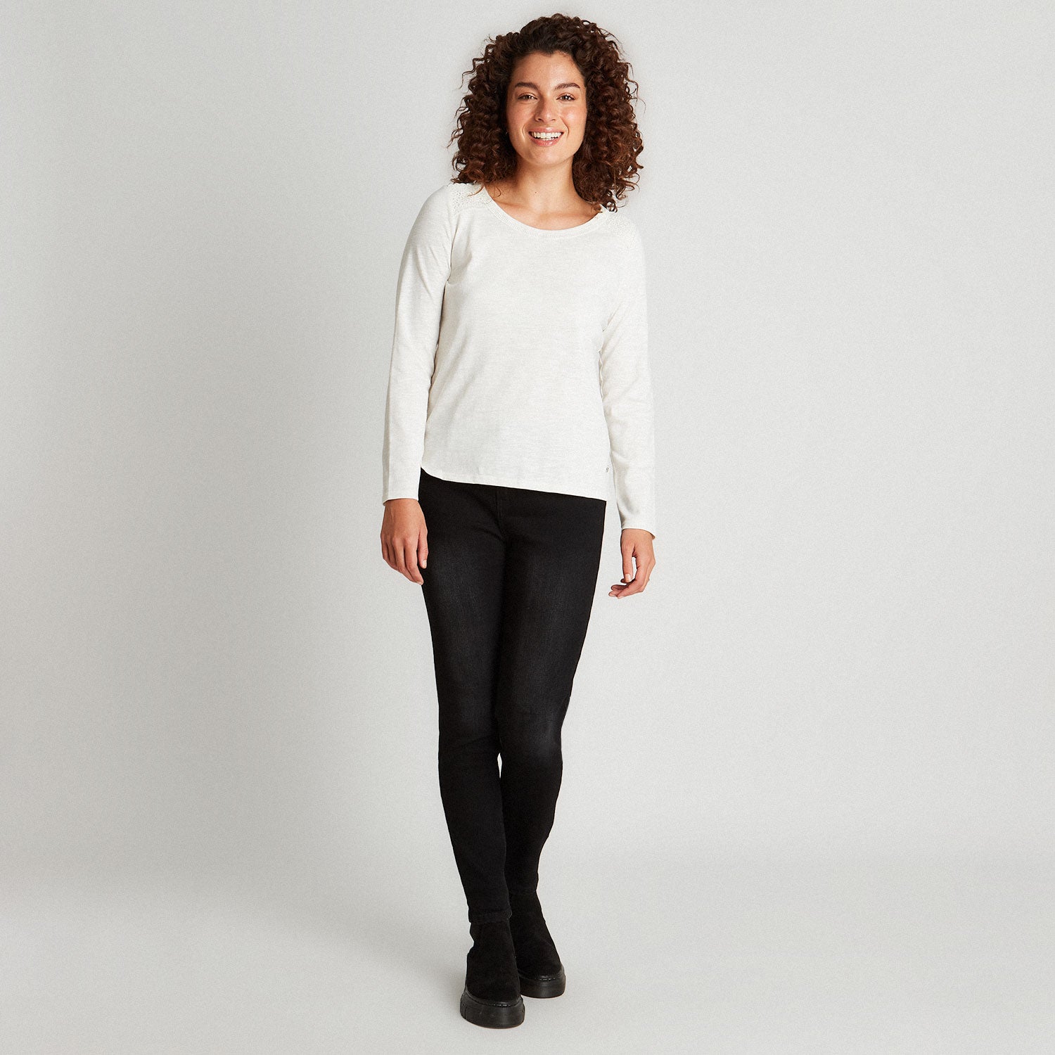 Polera Manga Larga Con Aplicación de Macramé Crudo