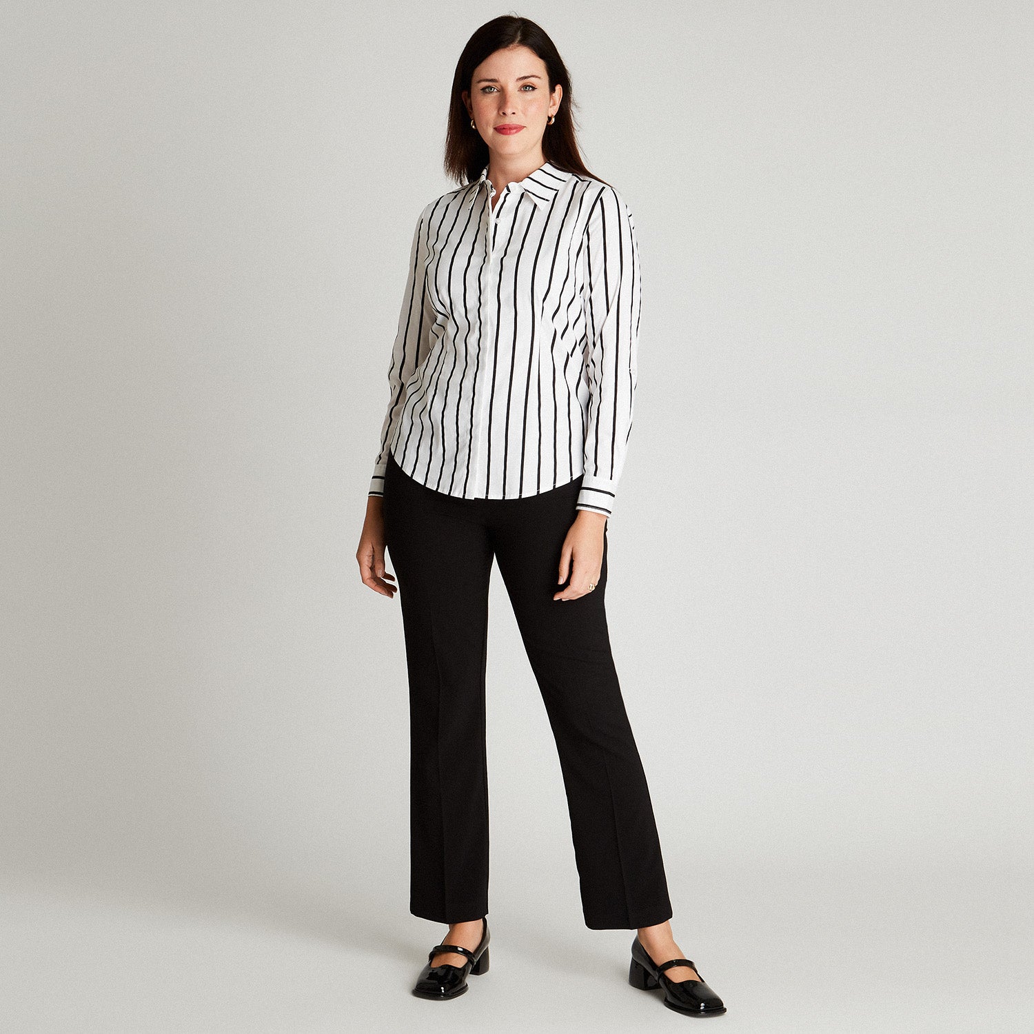 Descubre la blusa rayada negra manga larga de Lorenzo, una prenda versátil para toda temporada que combina estilo y comodidad. Confeccionada en 72% Algodón, 24% poliéster y 4% Elastano, esta blusa presenta cuello camisero y detalle roll up en las mangas, ideal para un look casual y elegante en cualquier ocasión. Lorenzo di Pontti