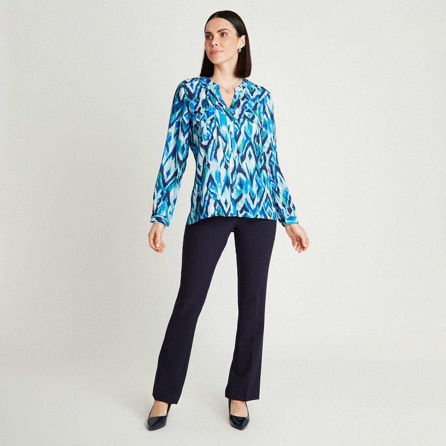 Blusa Azul Manga Larga Estampado Cuello Mao