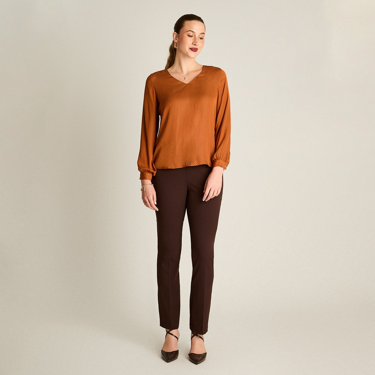 Blusa Terracota Manga Larga con Botón en Espalda – Suave y elegante | lorenzo di ponti