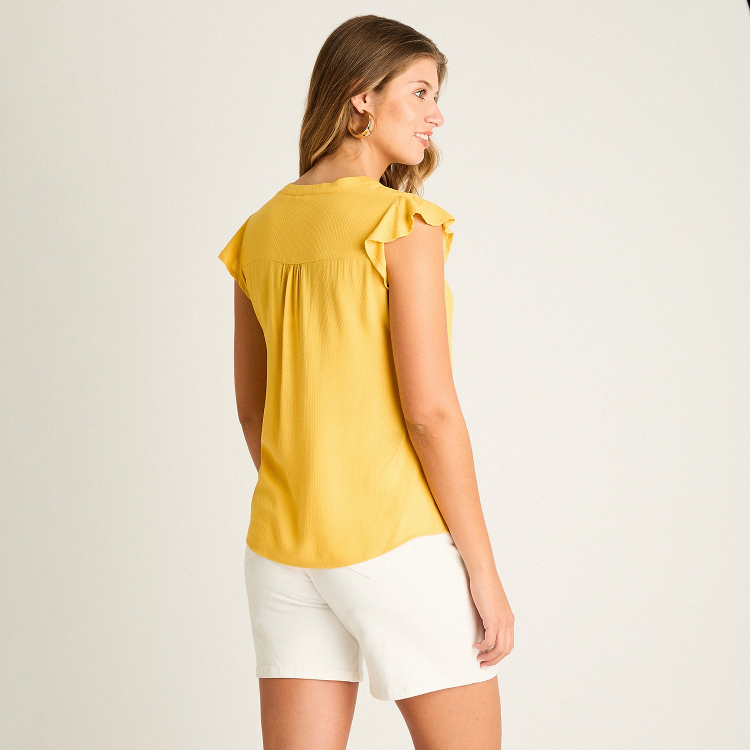 Blusa Mostaza Manga Corta No Elasticado Sin Forro Calce Normal