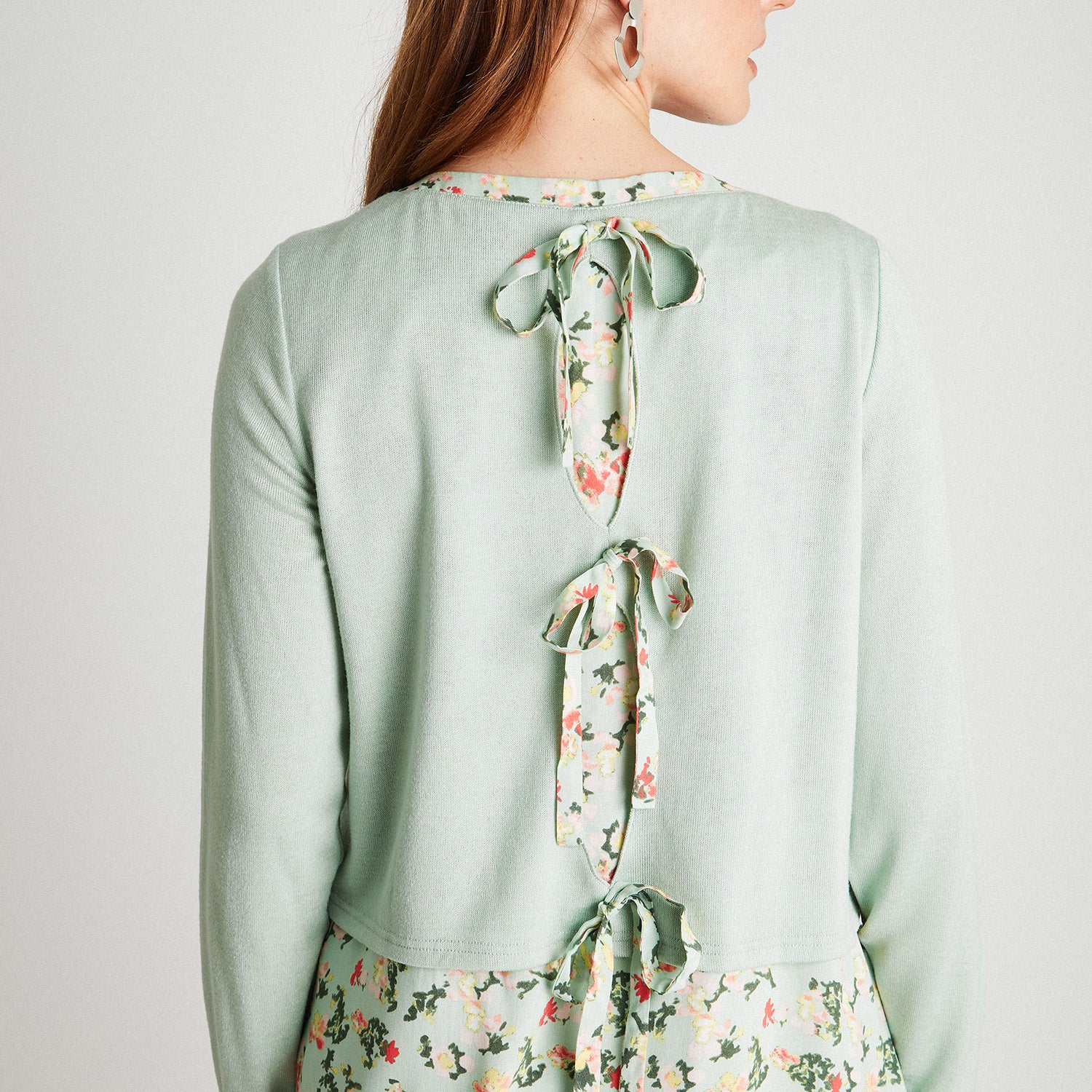 Polera Tejida Mix Fabric Con Detalle En espalda Verde Menta
