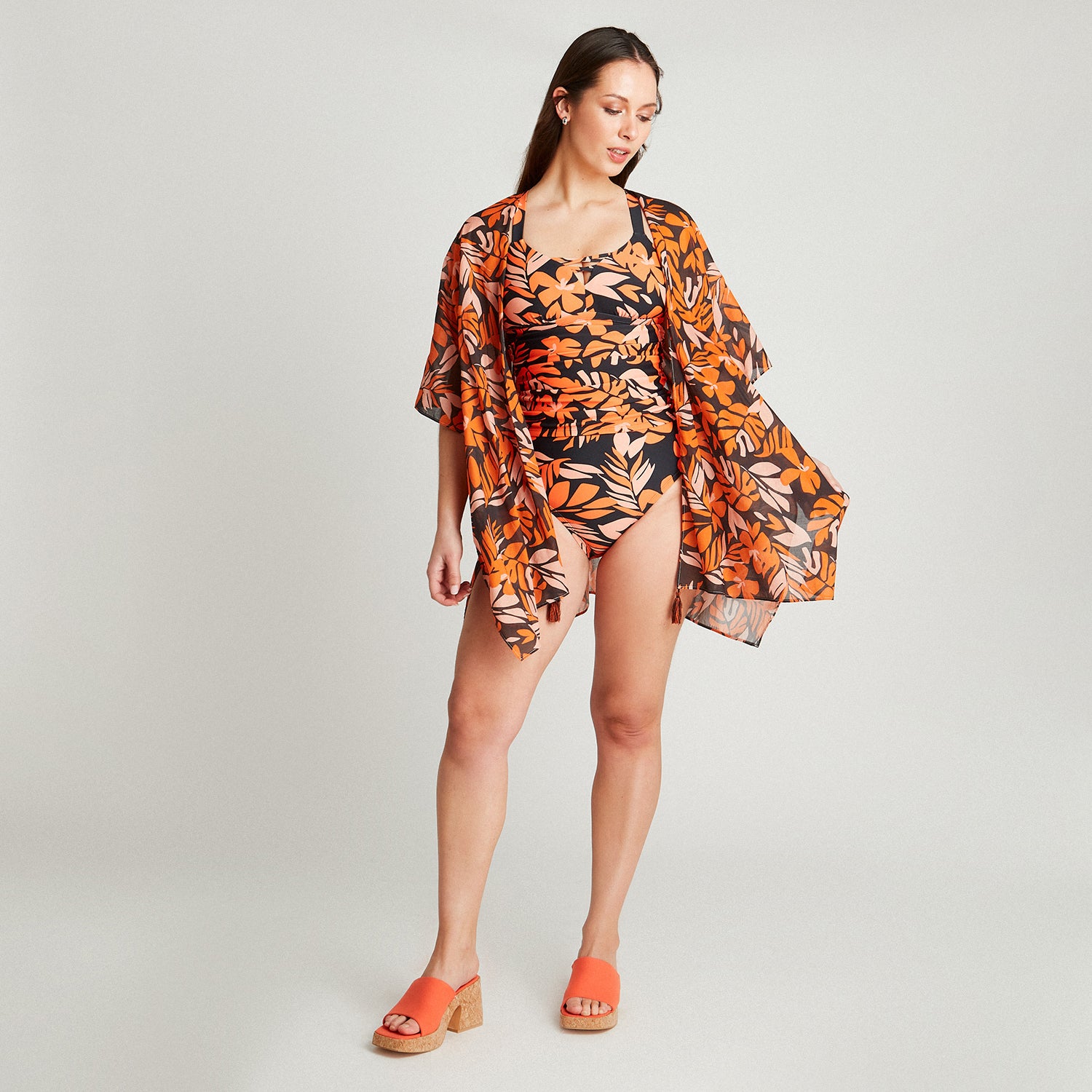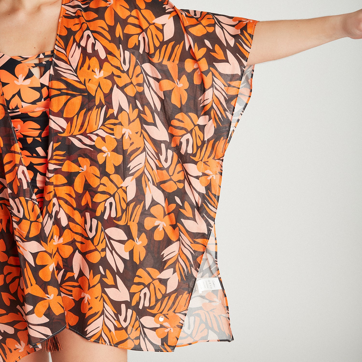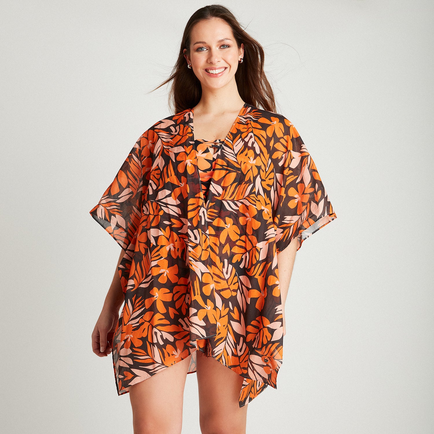 Salida De Baño Estampada Naranjo Manga Kimono Primavera Curvi