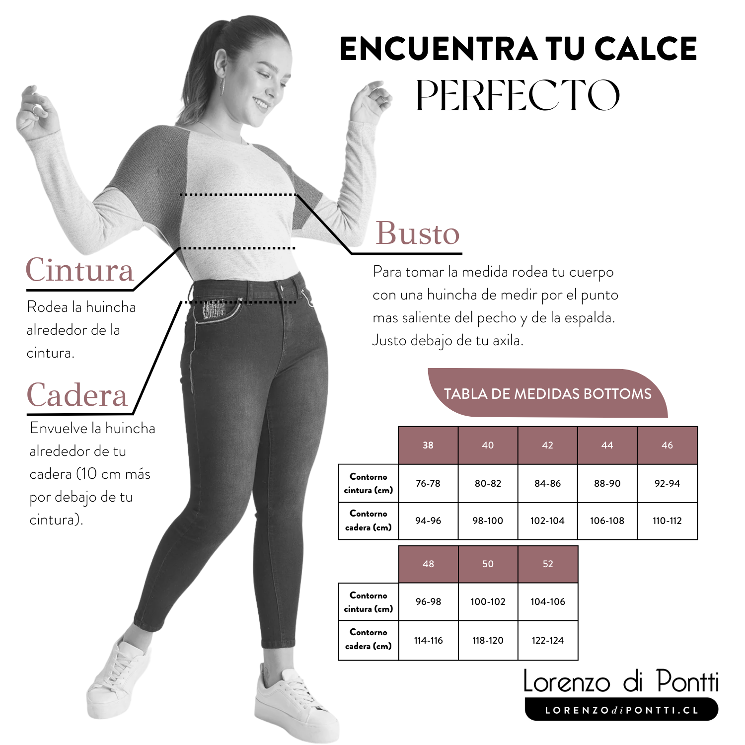 Tip: La modelo mide 1.75 mt de altura, 110 cm de cadera, 96 cm de cintura y 81 cm de busto y está usando talla S/ 40