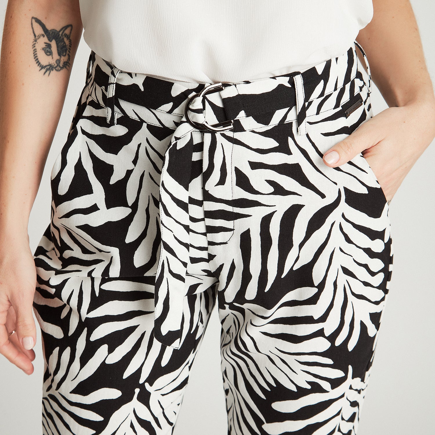 Capri Estampado Negro Con Lazo Y Bolsillos