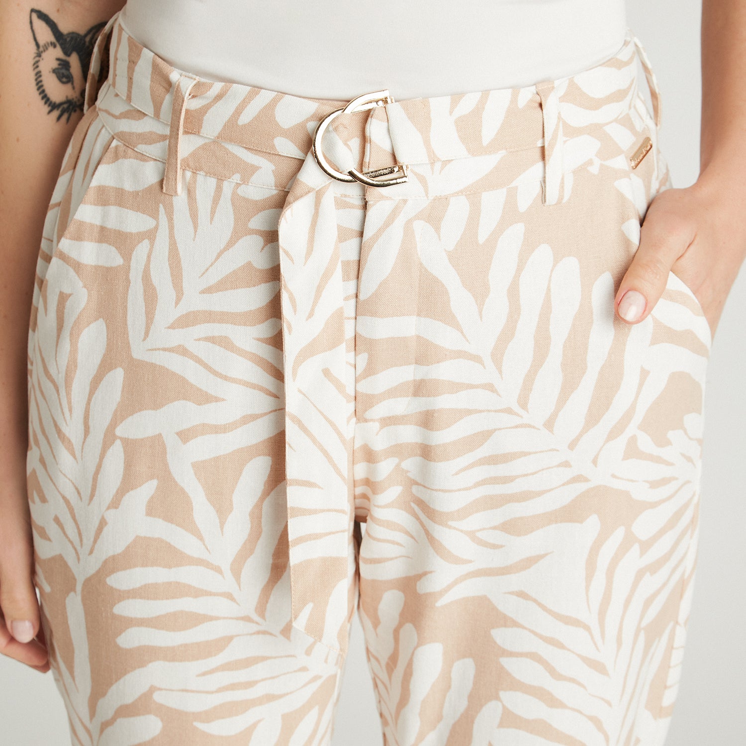 Capri Crudo Estampado Con Lazo Y Bolsillos