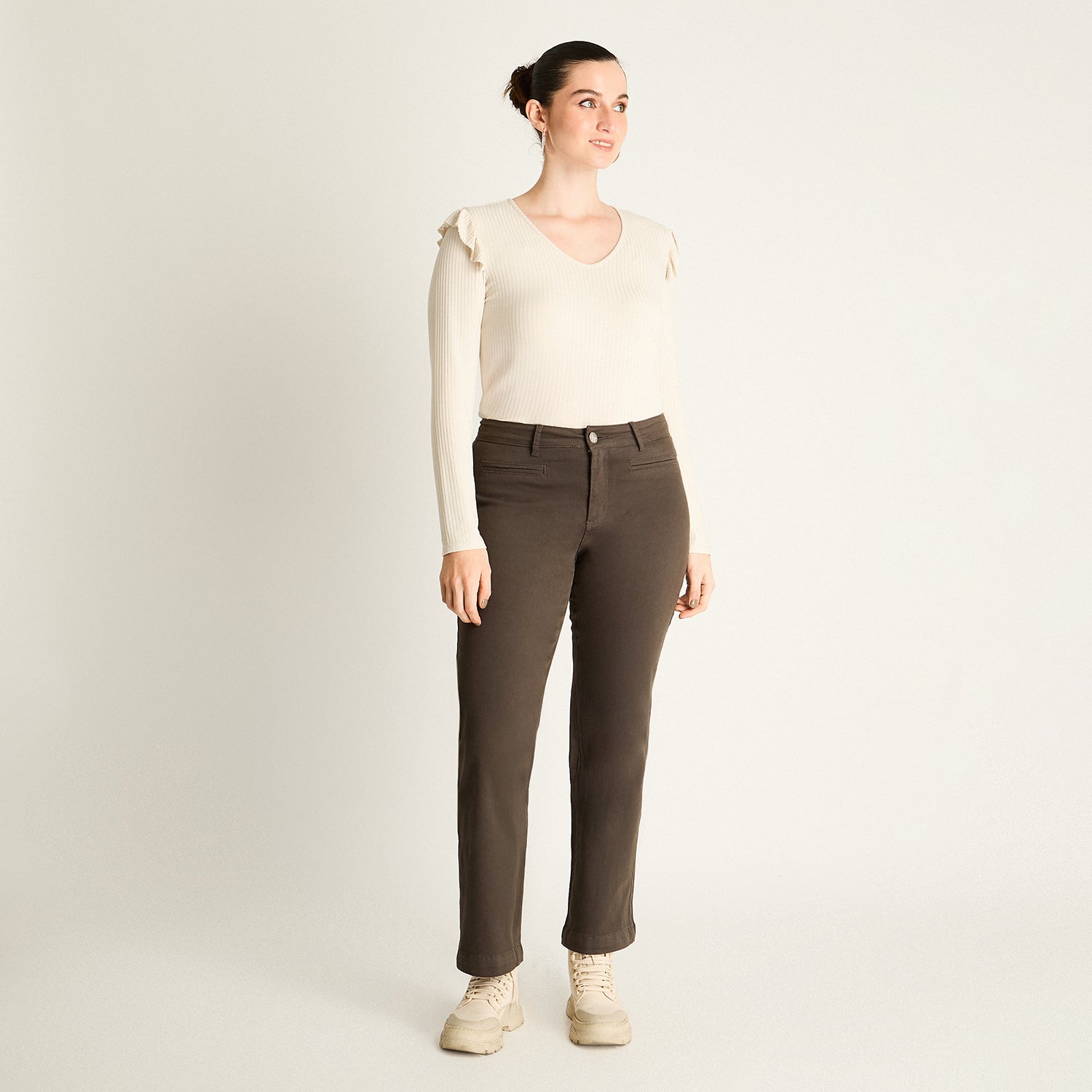 Estos jeans recto gris oscuro para mujer combinan lo moderno con lo atemporal. Su diseño de pierna ancha y calce holgado aporta libertad y un look relajado, sin perder la sofisticación que los convierte en un básico versátil.