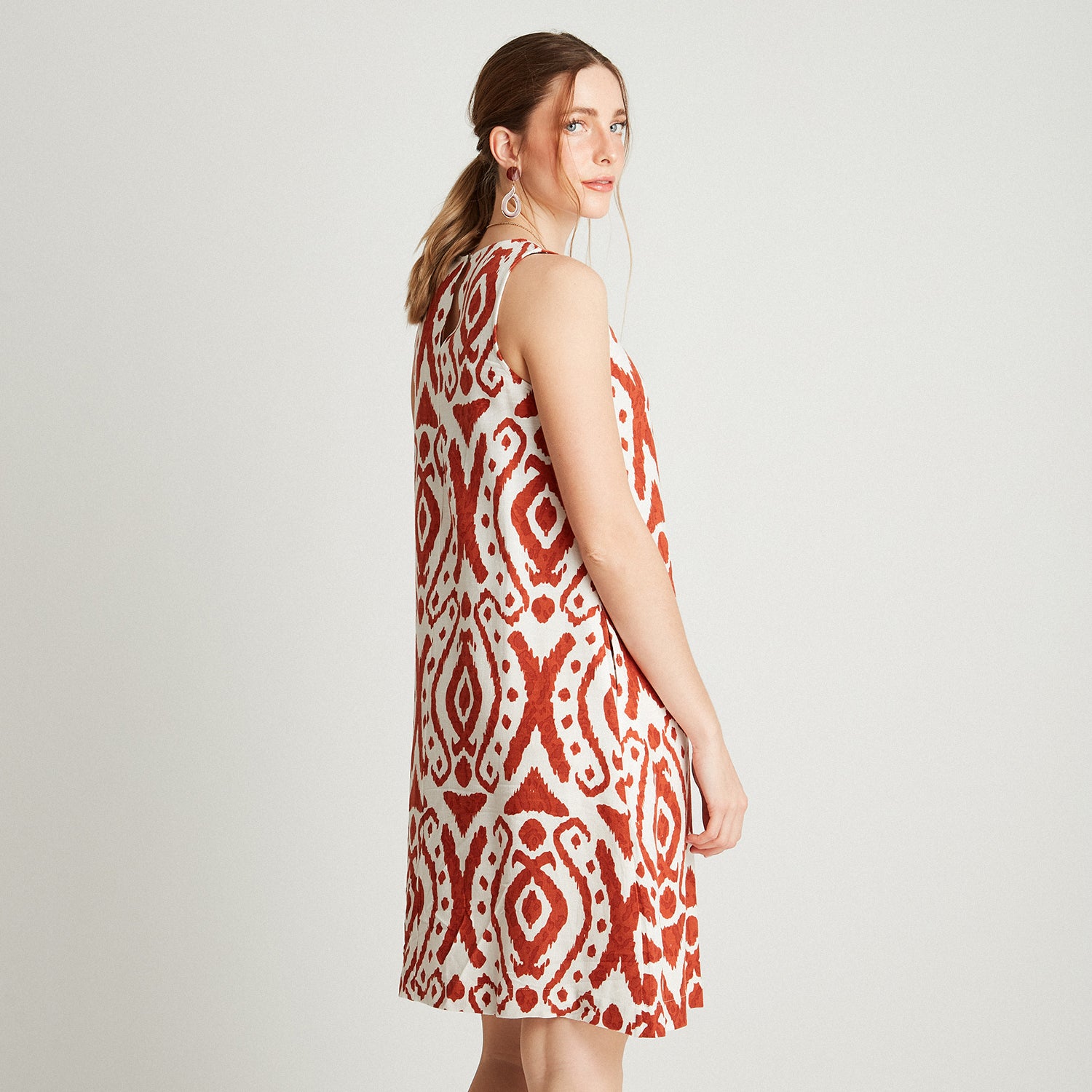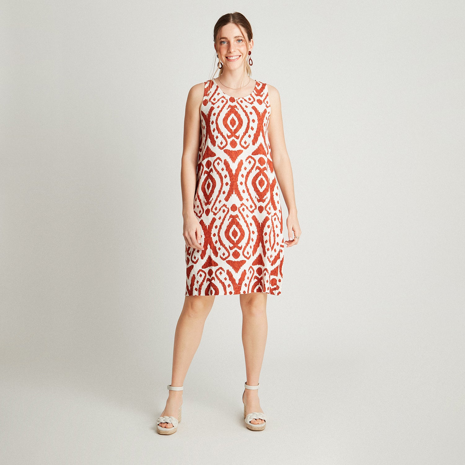 Vestido Midi Terracota Sin Manga Estampado Cuello Redondo