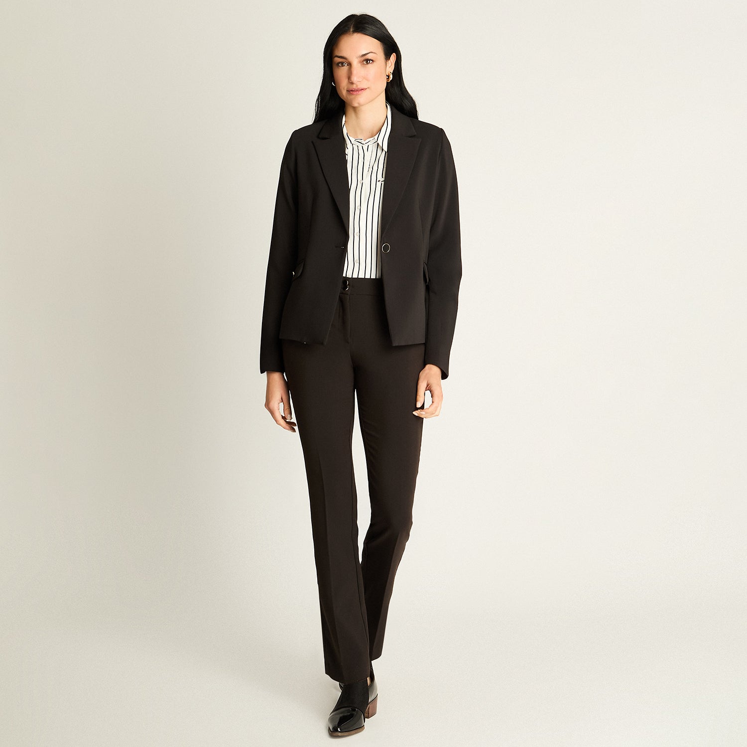 Un blazer infalible que complementa desde pantalones formales hasta faldas lápiz, ideal para quienes desean destacar con presencia y confianza.